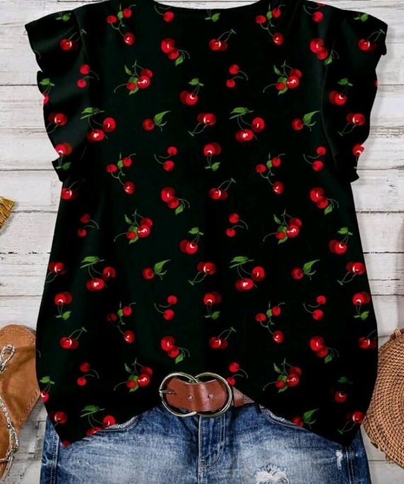 BLUSA ROMÁNTICA CON ASIMETRIA, MANGA CORTA