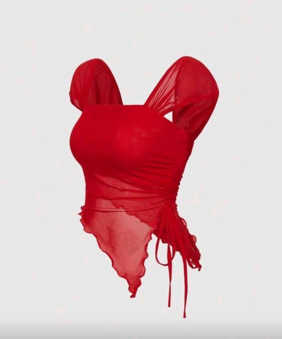 BLUSA DE MALLA CON ARRUCHE LATERAL
