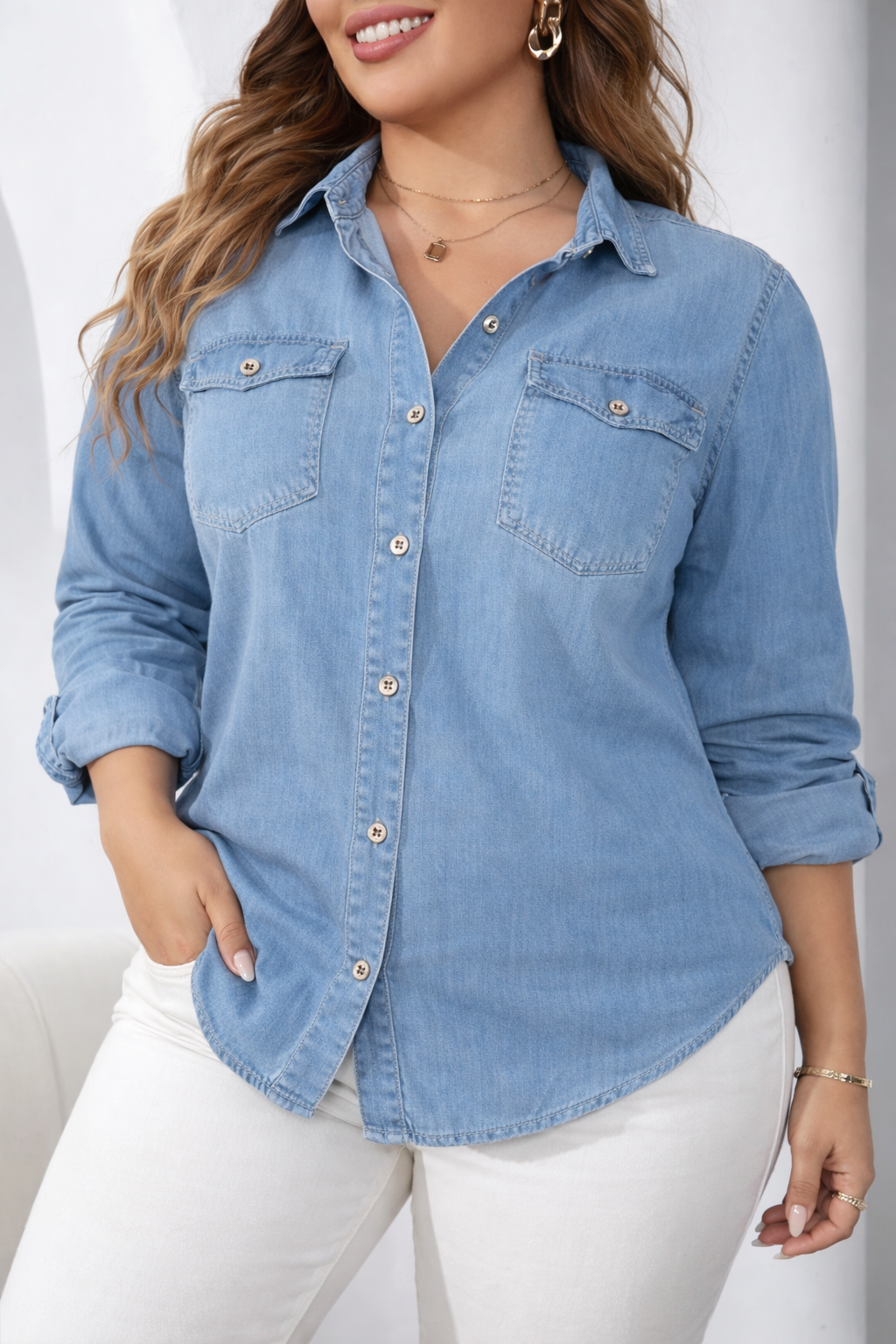 • Tela principal: Denim ligero (algodón con mezcla poliéster)