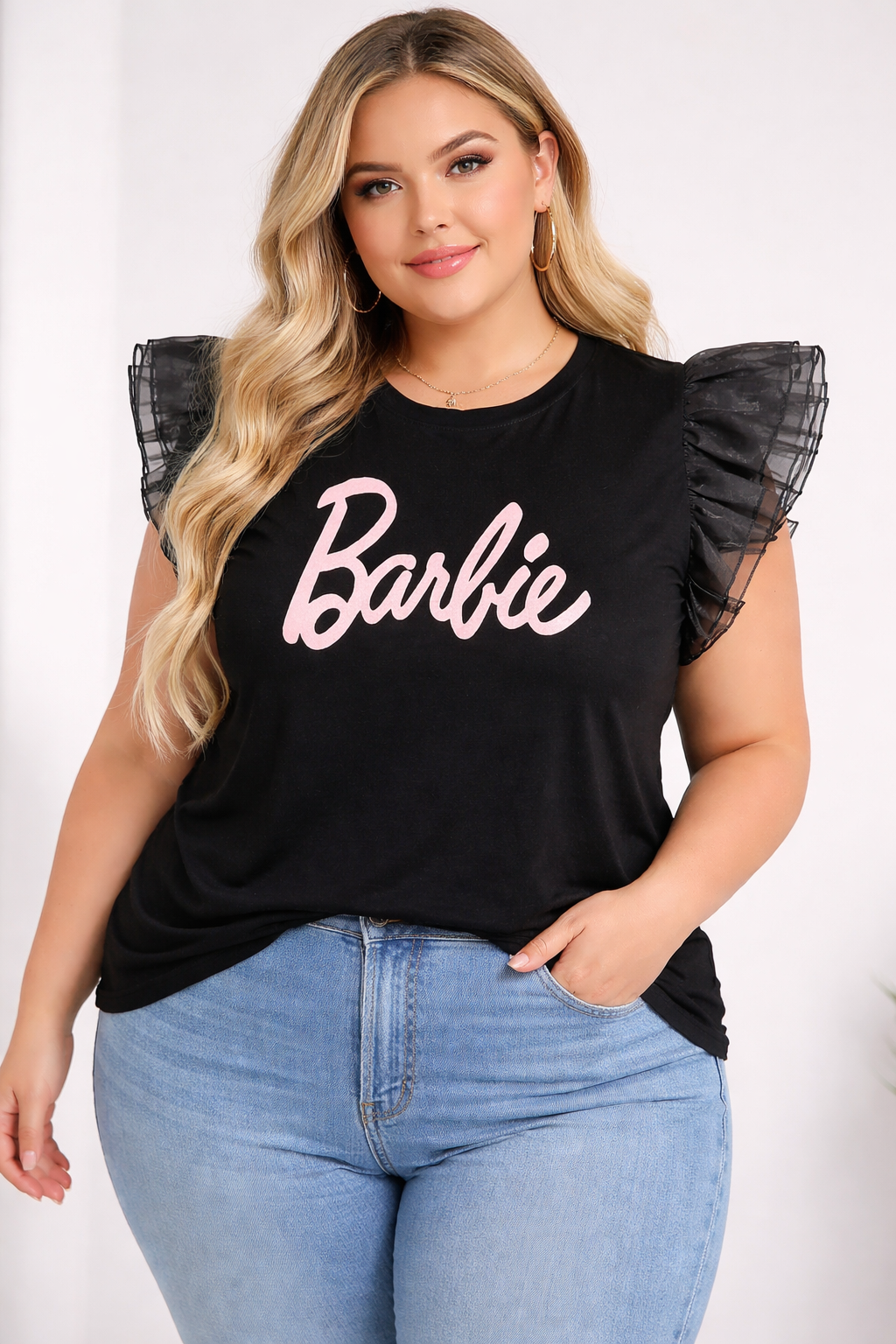 • Aplicación frontal: Estampado + aplique textil decorativo